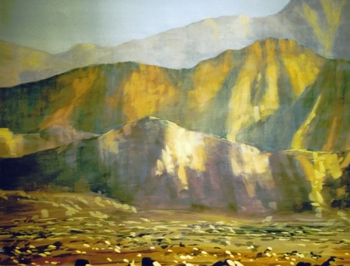 La construction s'est faite sur place avec l'aide des résidents en tenant compte des possibilités de chacun. Seule la toile peinte du cyclorama fût peinte à Genève dans les locaux de l'école. Comme l'essentiel des comédiens souffraient de handicaps altérant potentiellement l'équilibre, on m'avait encouragé à construire solide. En fait, je crois n'avoir rien construit de plus solide ensuite! On apprend. L'intrigue se déroule dans un petit village en bordure de désert. La petite scène de la fondation n'avait pas une profondeur gigantesque et nous sommes partis sur l'idée de la toile peinte pour ouvrir le décor au maximum.